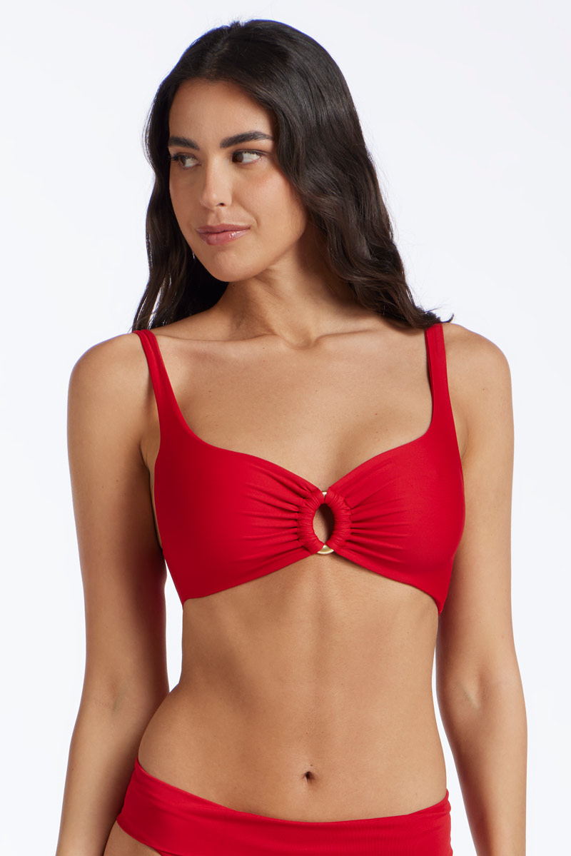 Bralette in microfibra tinta unita, con fibbia doratsa ad anello sul décolleté.