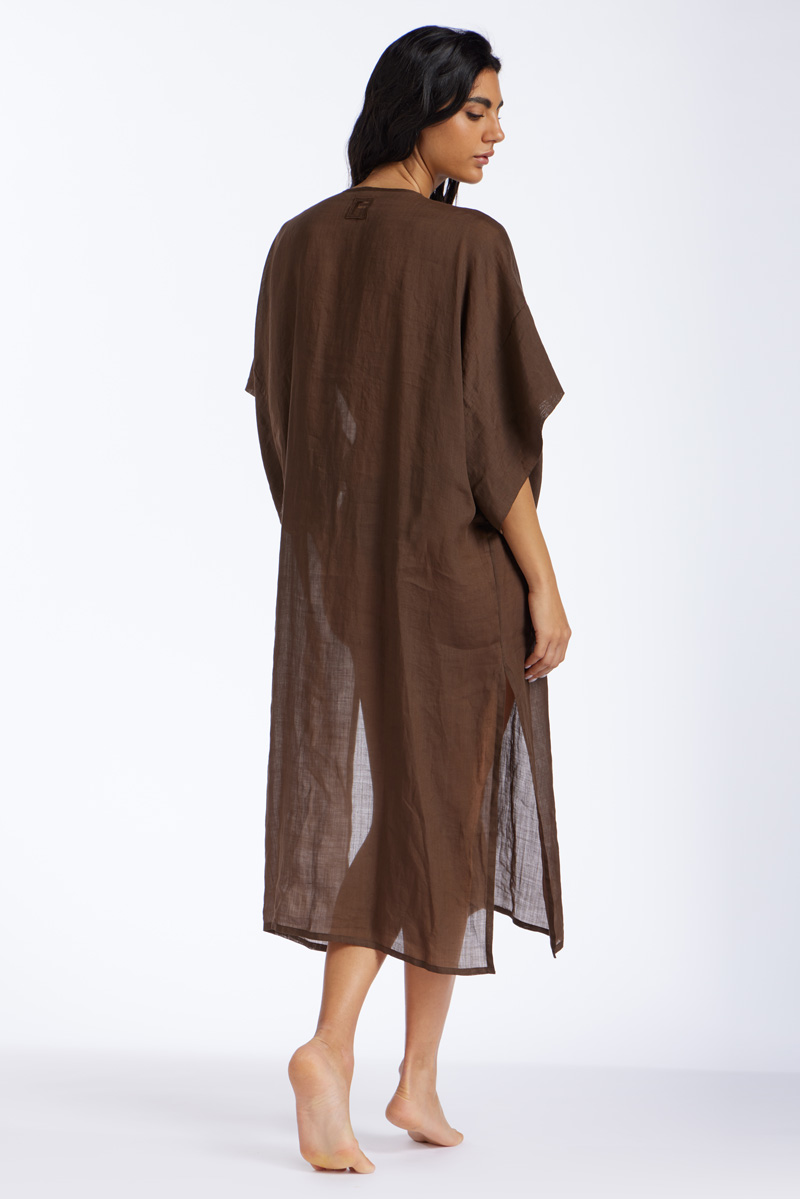 KAFTANO LUNGO IN LINO TINTA UNITA