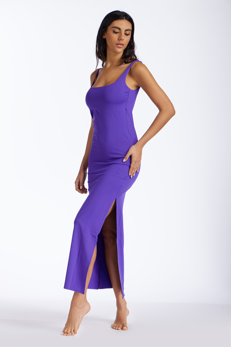 Kaftano lungo in lino tinta unita con ampie maniche, scollo a V e laccetti regolabili sul davanti.