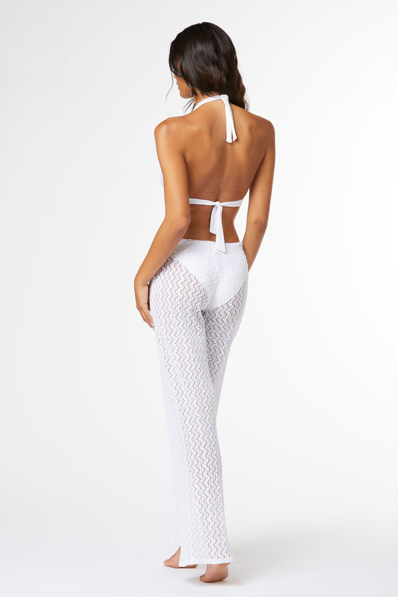 Pantalone a gamba dritta in pizzo stretch, con comoda coulisse in vita.
