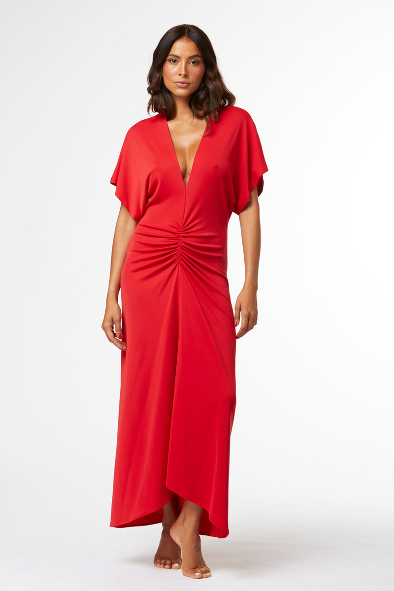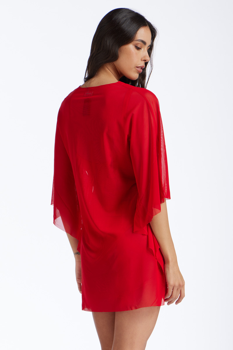 Poncho in tulle tinta unita, con scollo a V e maniche ampie.