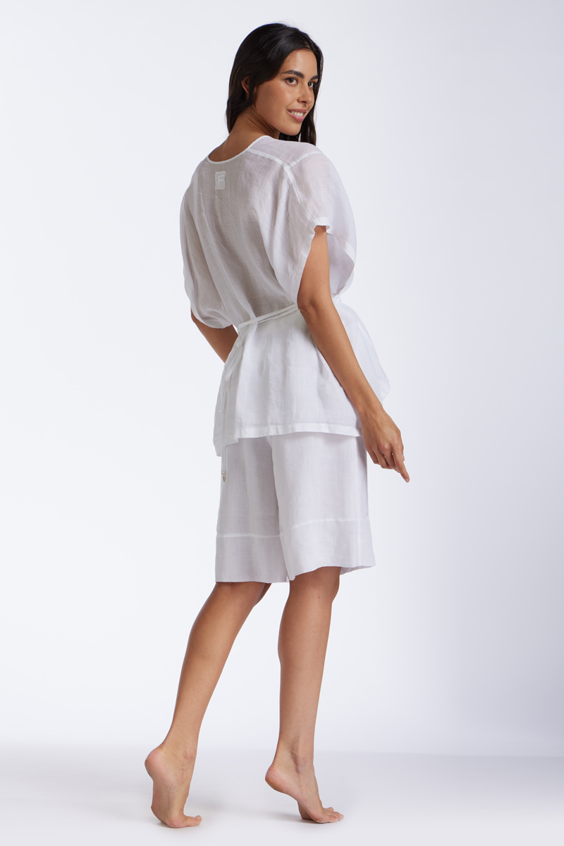 Solid colour linen bermuda shorts, with wide leg and drawstring at the waist.