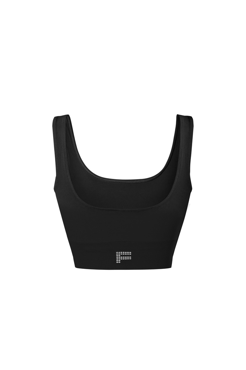 Square neckline active top with FISICO logo on the back. Made of technical runproof microfiber. With removable cups. Made in Italy. Always bring along your FISICO net mini bag, a gift for you with every fitness purchase.