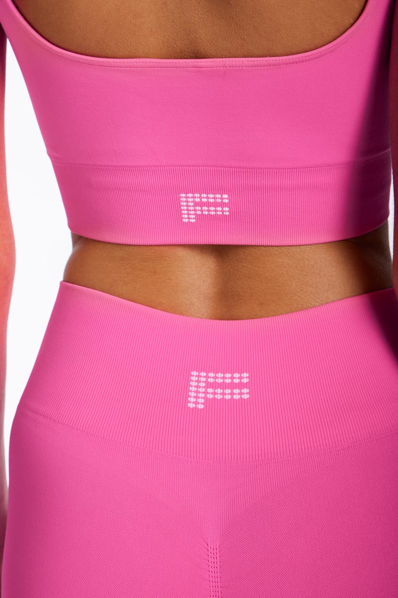 Square neckline active top with FISICO logo on the back. Made of technical runproof microfiber. With removable cups. Made in Italy. Always bring along your FISICO net mini bag, a gift for you with every fitness purchase.