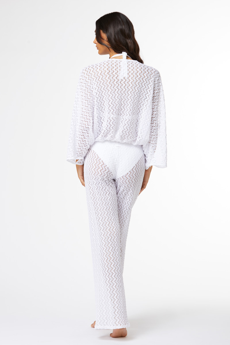 Solid colour lace shirt with a deep V-neckline and adjustable ties on the front. Feautring cut-out details on the sleeves.