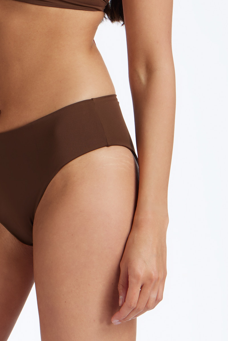 Reversible two-tone bikini bottom in microfiber, with a classic high-waisted cut.